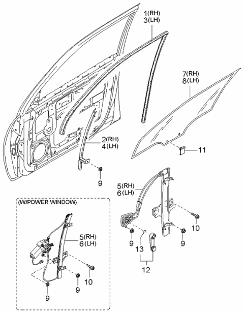 Kia Spectra Sedan (New Body Style) parts. Parts like Front Door Window Regulator & Glass are shipped directly from authorized Kia dealers and backed by the manufacturer's warranty. Parts fit for the following vehicle options. Engine: 1.8L. Body: 4 Door Sedan.