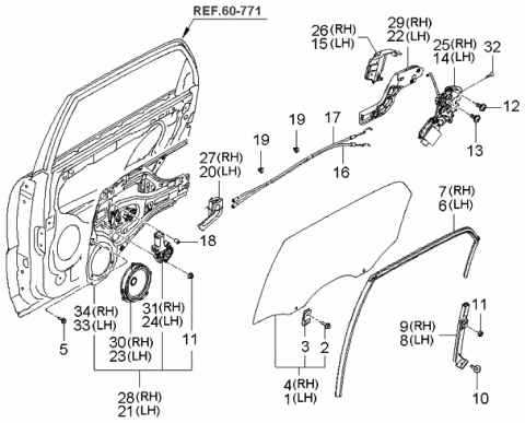Diagram (1 of 1): Rear Door Window Regulator & Glass (01/01)