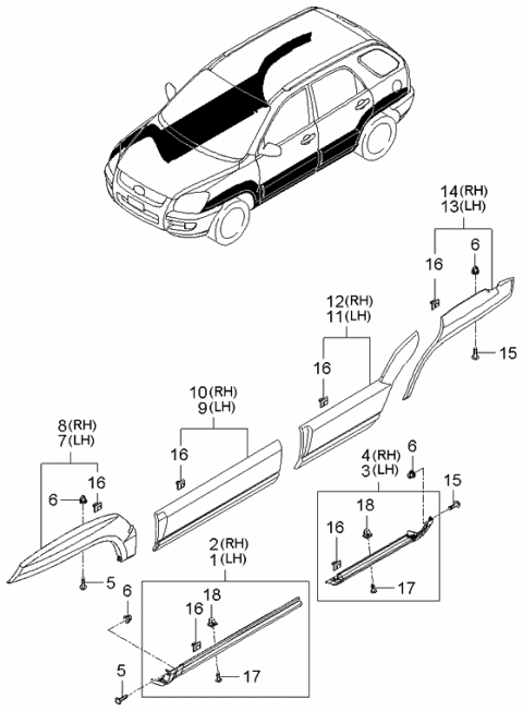 Kia Sportage Produced Before SEP.2006 parts. Parts like Body Side Moulding are shipped directly from authorized Kia dealers and backed by the manufacturer's warranty. Parts fit for the following vehicle options. Engine: 2.0L, 2.7L. Body: 5 Door Wagon.